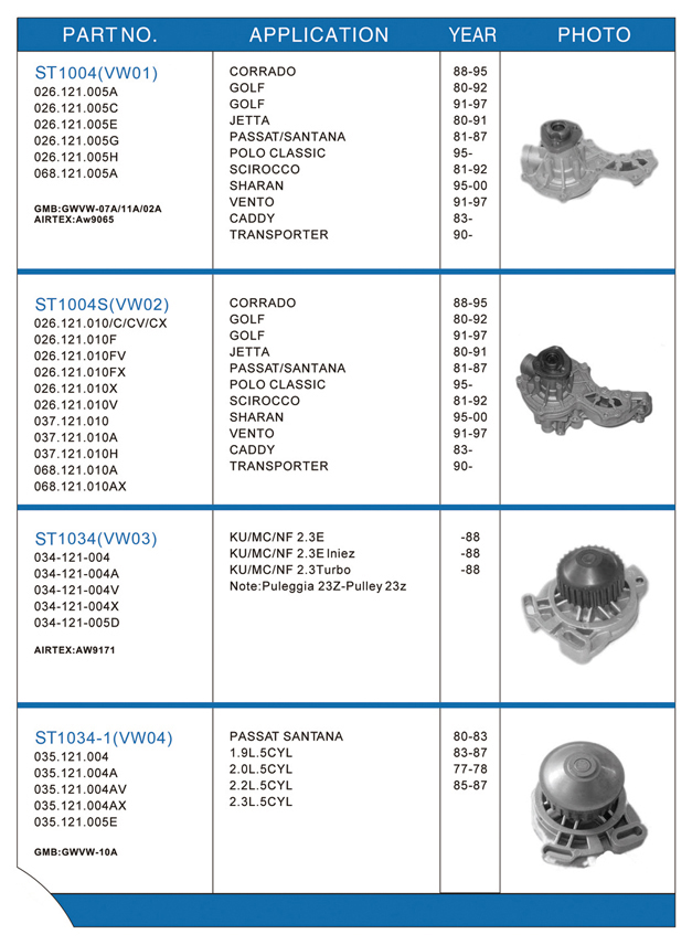 Water pump list