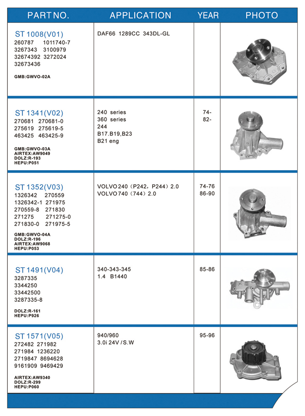 Water pump list
