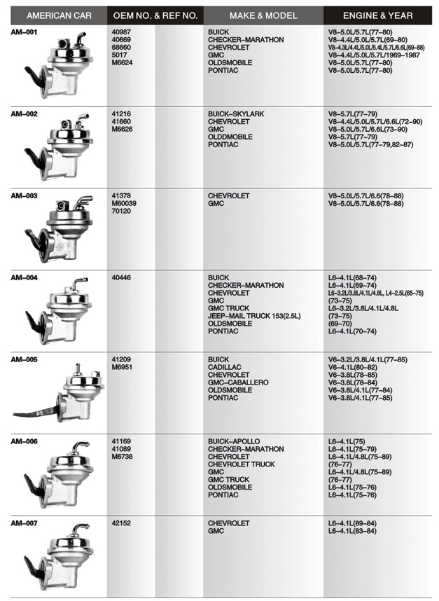 Mechanical fuel pump list