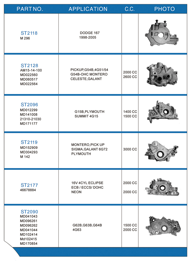 Oil pump list